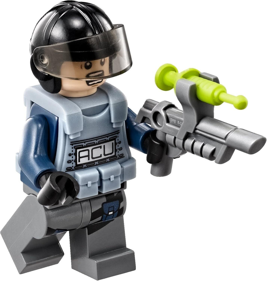 Perform a LEGO Jurassic World Pteranodon Capture with the Jurassic One helicopter with opening side door, platform and huge net shooter. Fire the net shooter to take down the pteranodon! Emergency! A pteranodon has grabbed an ACU trooper and is flying away with him gripped in its claws. Jump into the cockpit of the cool Jurassic One helicopter with Simon Masrani, soar into the sky and speed to the rescue. When you have the pteranodon in your sights, open the side door to hang out on the platform and fire the net shooter to capture the dinosaur before it can escape. Includes 2 mini figures: Simon Masrani and an ACU trooper with a weapon. Jurassic One helicopter features a cockpit for a mini figure, huge rotor, opening side door with a platform, removable stud blaster and a net shooter. Jurassic One helicopter features a cockpit for a mini figure, huge rotor, opening side door with a platform, removable stud blaster and a net shooter; Pteranodon features claws and flapping wings.